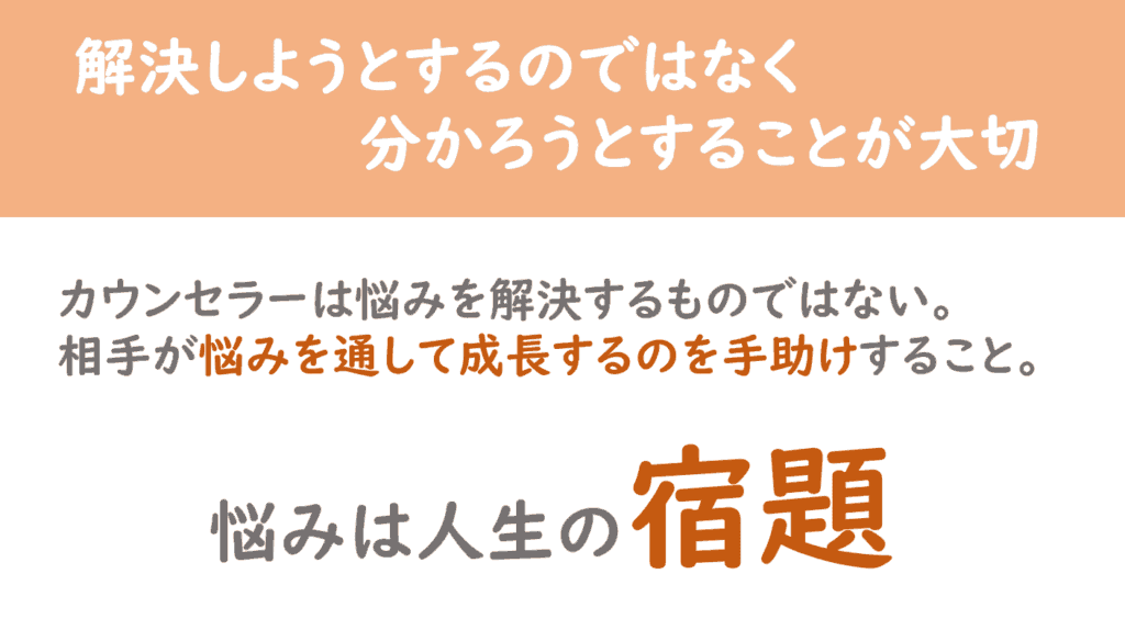 誤解を恐れず言うと、カウンセラーは悩みを解決しようと思えば思うほど解決しません。